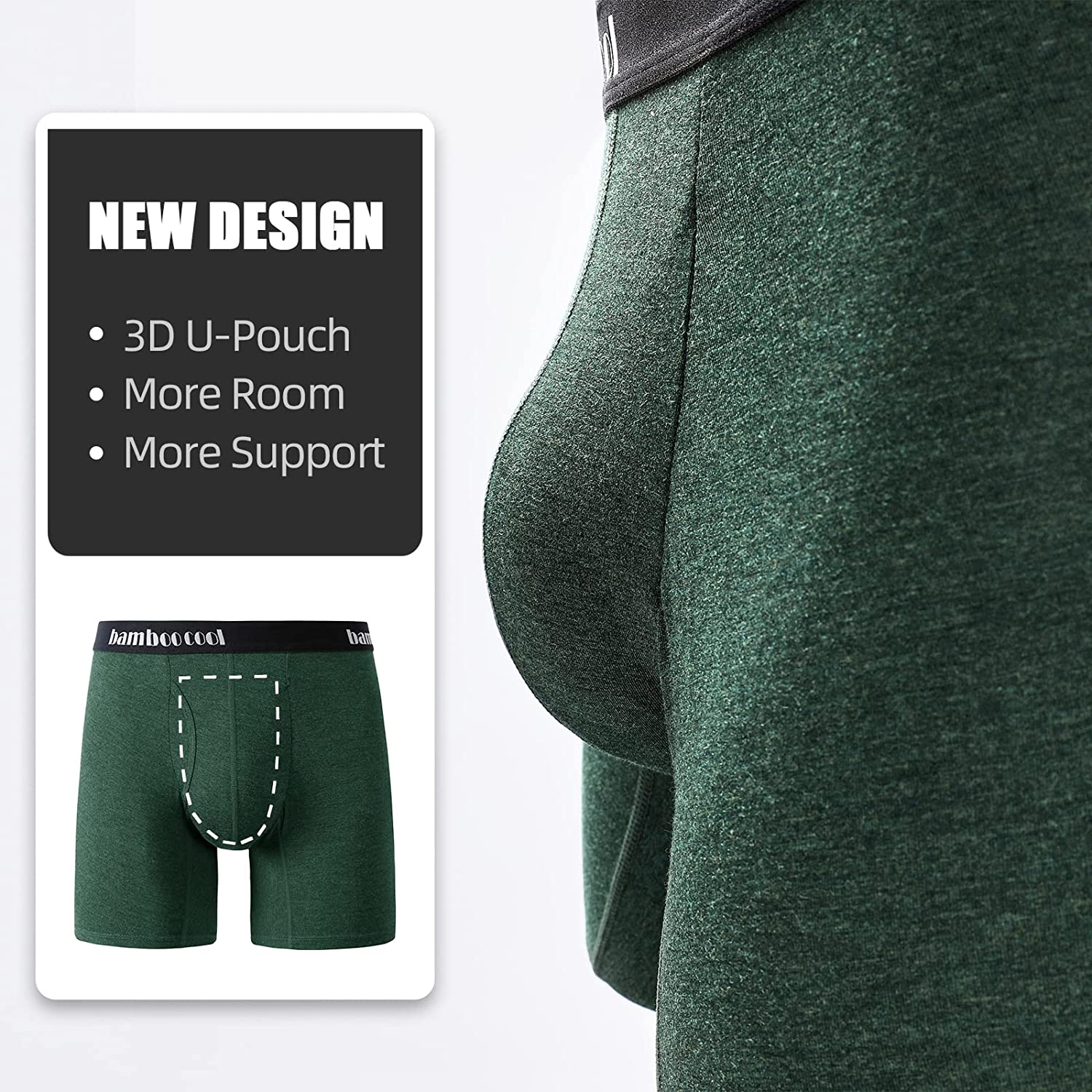 BAMBOO COOL Men’s Underwear Boxer Briefs Soft Comfortable Bamboo Viscose Underwear Trunks (4 Pack)
