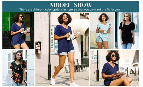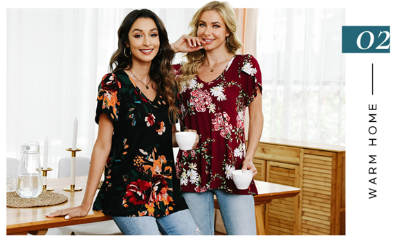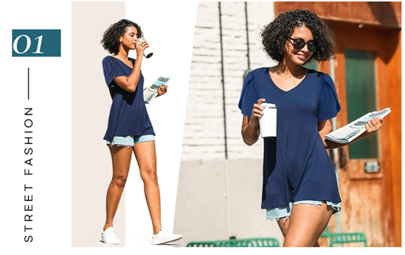 • ❤ 【 Features 】 casual tunic top, v neck tops tee, petal short sleeve tshirts, stretch loose blouse, solid color and print, on the hip length, sexy, plain, trendy and elegant.