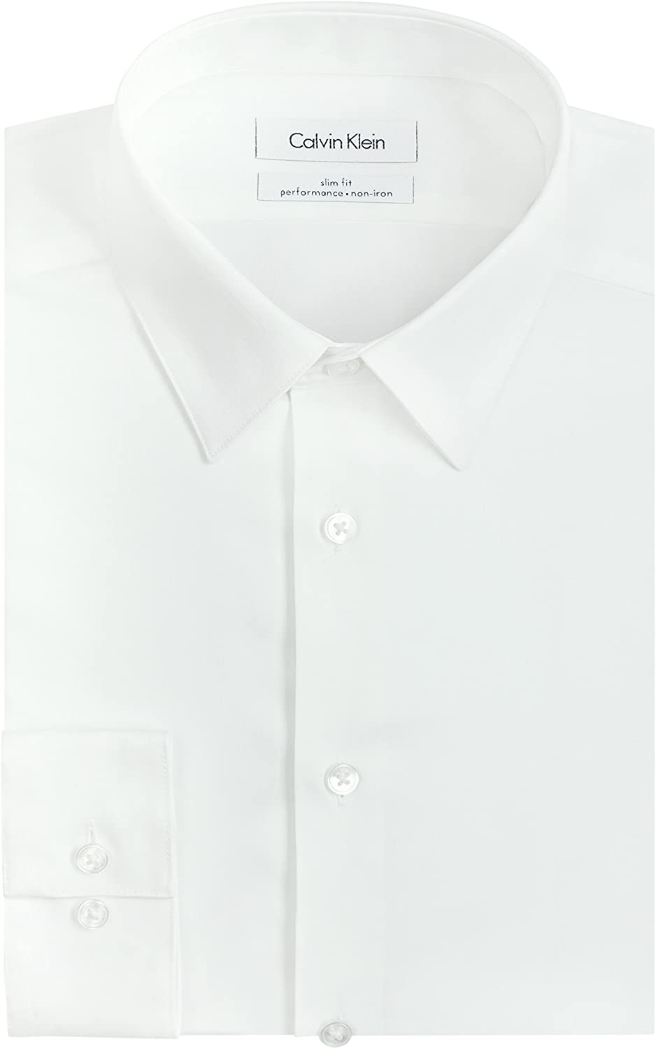 Calvin Klein Men's Dress Shirt Slim Fit Non-iron Herringbone