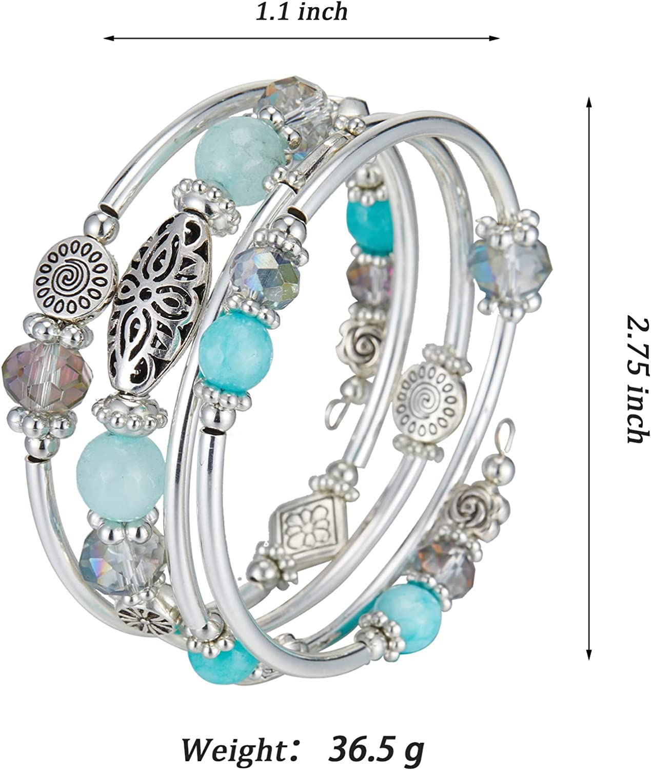 • Perfect Size: The diameter size of this silver bracelet is2.4 inches (6cm), it's the perfect size. The way to wear this wrap bracelet is very simple and convenient, just winding the wristband on the wrist layer by layer, also stay firm while wearing. Weight: 36.4g (0.08lb), there is no burden to wear this crystal bracelet on the wrist