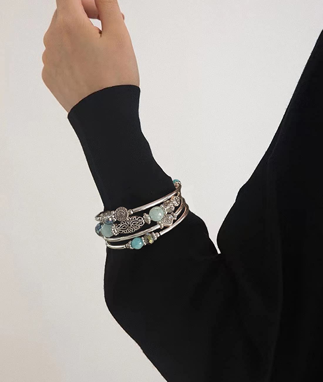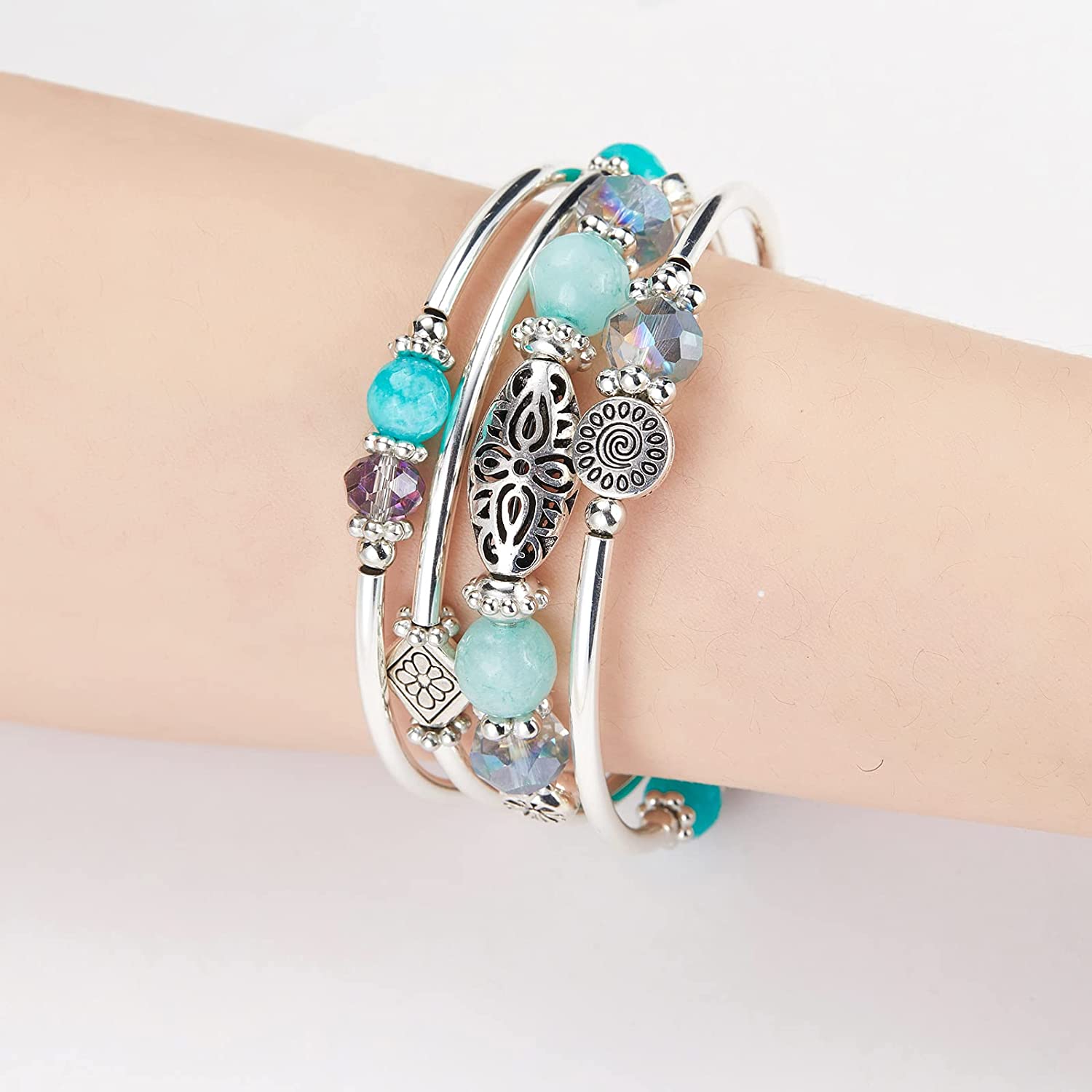 FULU AUTUMN Stackable Beaded Bracelets for Women Boho Wrap Silver Bracelet Layered Fashion Jewelry Gifts for Her