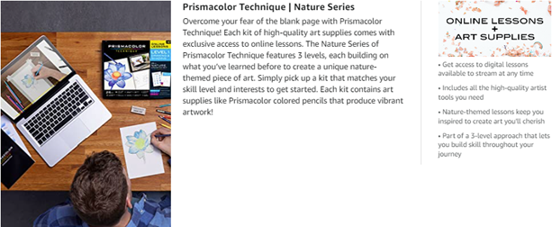Learn art at your own pace from the comfort of home with Prismacolor Technique. Each Prismacolor Technique set features a unique coupon code for access to digital art lessons you can’t get anywhere else. Instructed by Prismacolor artists, each lesson will teach you how to use the professional-grade art supplies included in the set to create a piece of art you will cherish. The Level 3 Nature Drawing Set is designed for those who have built up some skill and confidence in art. You’ll learn how to take your skills to the next level by recreating any landscape or nature photo using reference grids. The set features Prismacolor colored pencils with rich cores for smooth color laydown and an artist roll case so you can store and carry your art tools. You’ll also receive graphite pencils, a clear reference grid overlay, a colorless blender, an eraser, a drawing pad, a mini sharpener, a drawing template with grid, a set of instructions, and hours of online content to learn at your convenience!