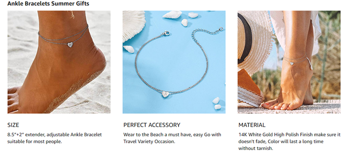 • SIZE: 8.5”+2” extender, adjustable Ankle Bracelet suitable for most people.