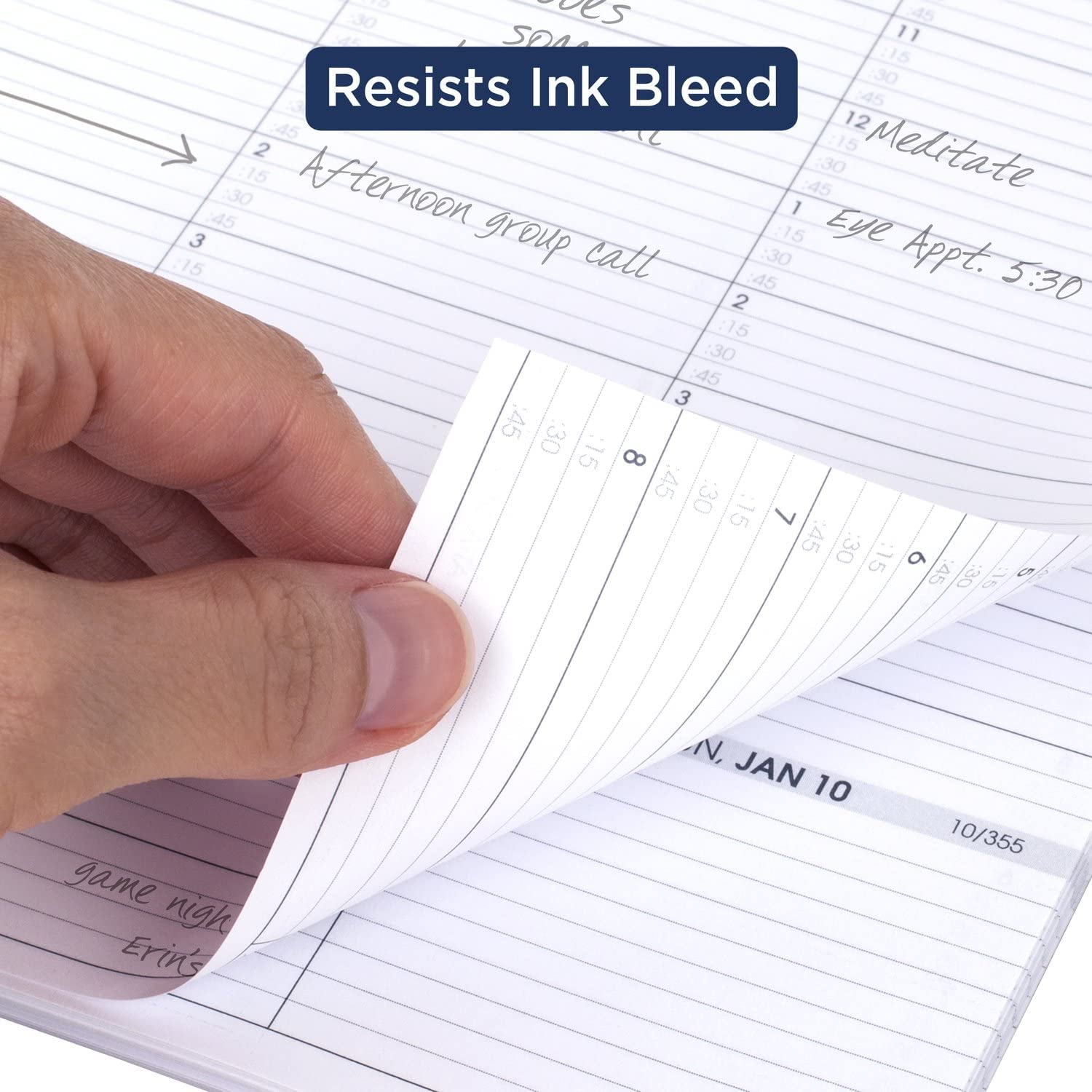 Guaranteed to last all year. Confidently face every deadline, special events and more. The AT-A-GLANCE Weekly Planner covers 13 months from January 2023 - January 2024. Plan your schedule without fear of distracting ink bleeding. Our improved, high-quality paper is designed for superior ink bleed resistance, which keeps plans neat and legible. Each day Monday-Saturday has a ruled column with 15-minute appointment times, while Sunday are condensed. Each page measures 7" x 8-3/4", with one week per two-page spread. Take charge of your schedule with classic style. Planner has a black faux leather cover and twin wire binding. Expand your organizational skills with special pages. Includes a personal information page, 3 year reference calendar and telephone/address pages. ACCO Brands will replace any AT-A-GLANCE planner that is returned within one year from the date of purchase. This guarantee does not cover damage due to misuse or abuse. Contact ACCO Brands Consumer Affairs for instructions.