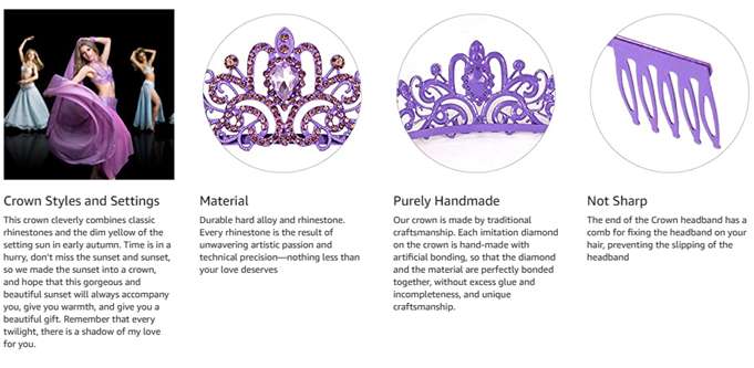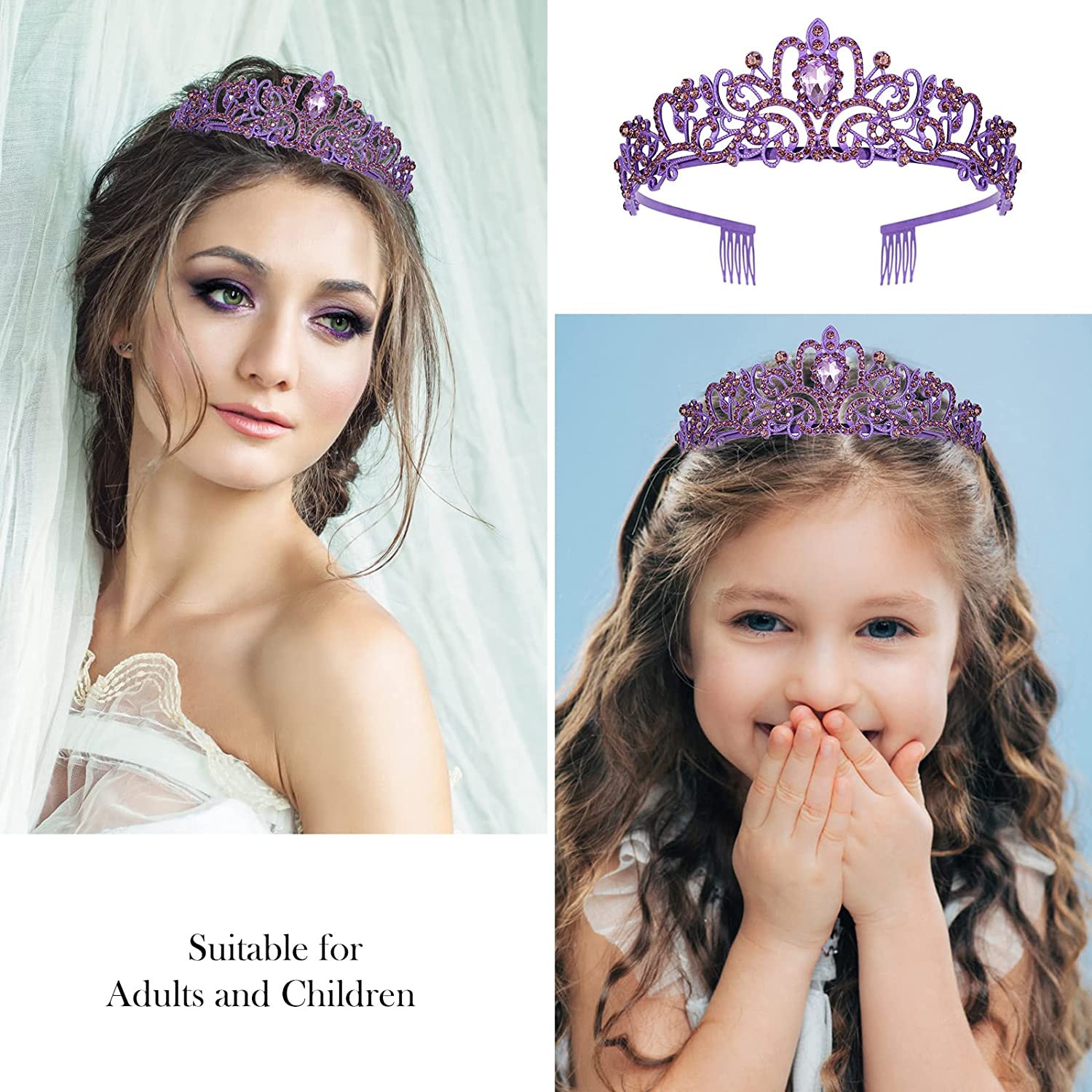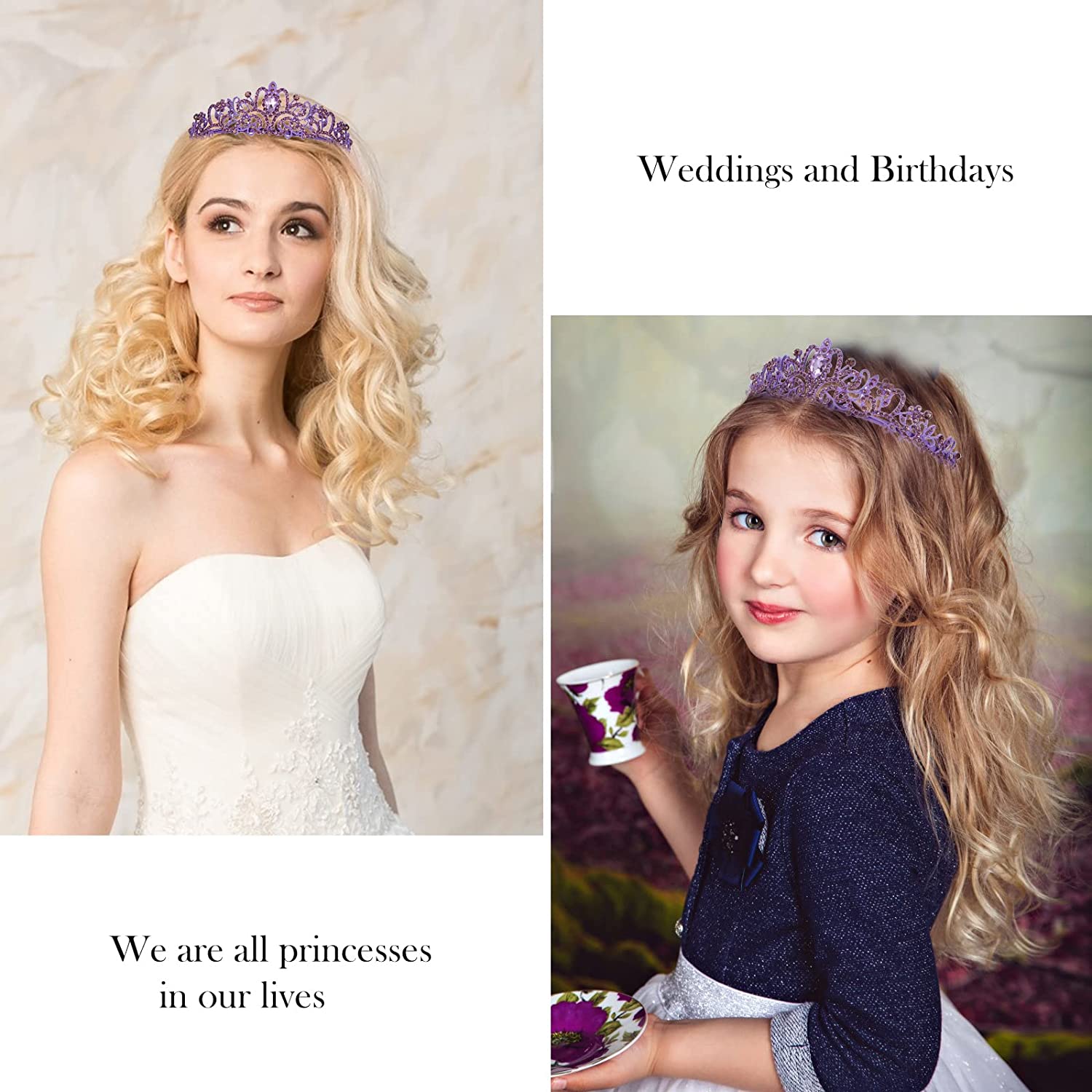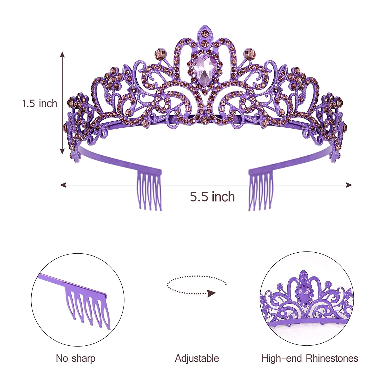 • ❤️Rhinestone Tiara: Made of high quality clear crystals in Gold-plated metal setting, eco-friendly. Perfect for any party use. It can also be used as a good photo prop, princess and queen style photos can be taken at any time. Besides, the end of the Crown headband has a comb for fixing the headband on your hair, preventing the slipping of the headband