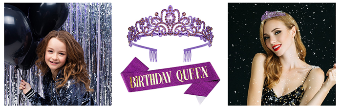 VELSCRUN Happy Birthday Queen Violets Tiara Crowns for Women, Birthday Girl Sash, Birthday Party Favors Supplies Birthday Gift for Her, 21st Birthday Party Decorations, Birthday Stuff Accessories