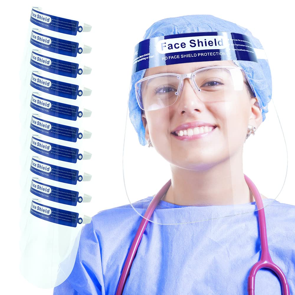 PANOPTX 10 Pack Plastic Clear Face Shield Anti Fog Protective Face Shield Mask Safety Face Shields for Daily Use