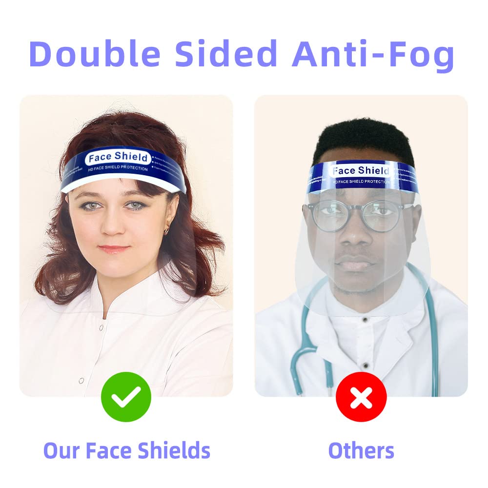 • Clear face shield for adults: Adult anti fog face shield for women and men. Lightweight and portable ,keeping these anti fog face shield mask in your backpack, home, workplace or car so that you can use plastic face shield mask outdoors, kitchen and office to protect your health anytime.