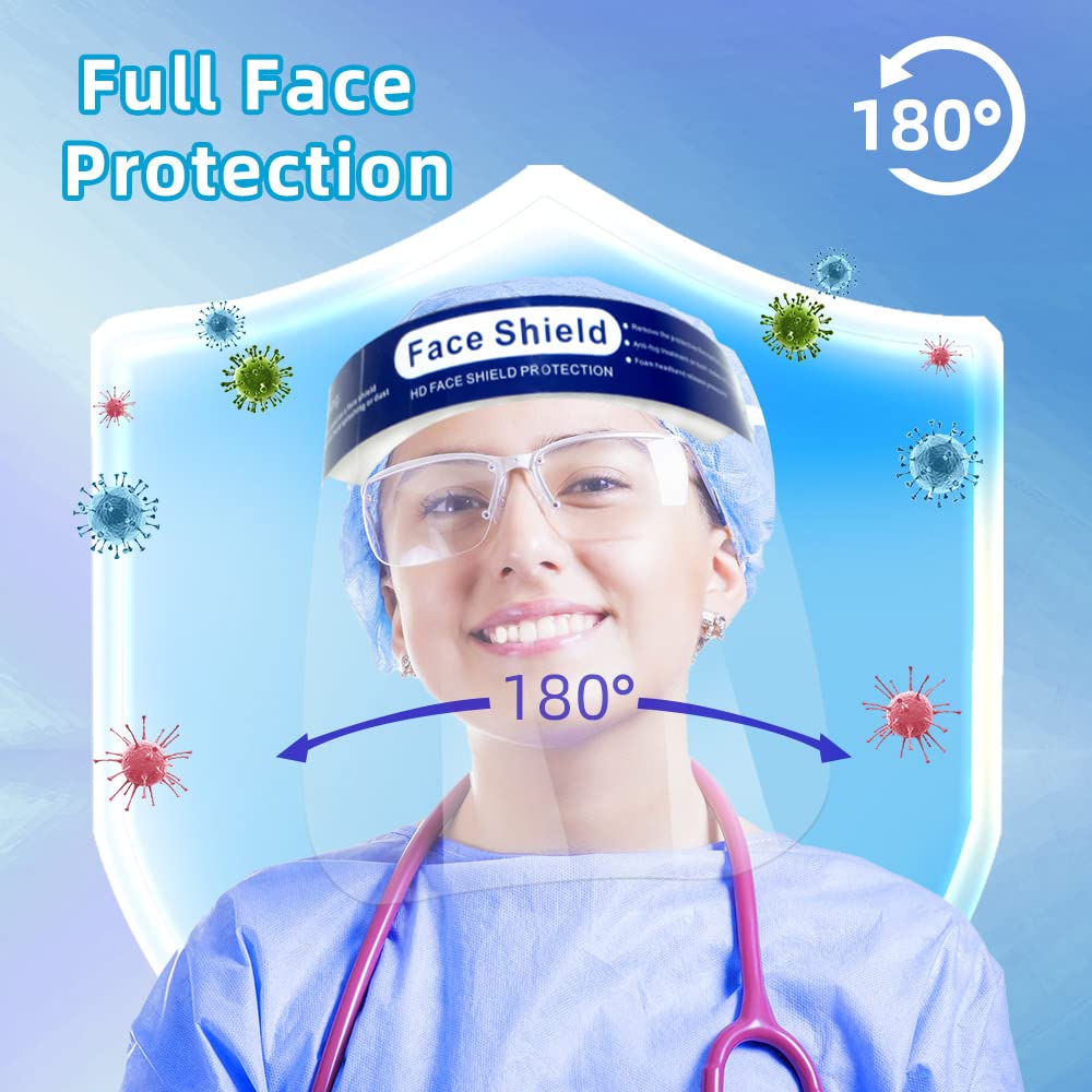• 180 °Face Protection:The protective full face shield can achieve 180° face protection which effectively isolates saliva and protect your face from spray, splatter, droplet, dust, oil and smoke and so on.Anti fog face shield for glasses wearers.