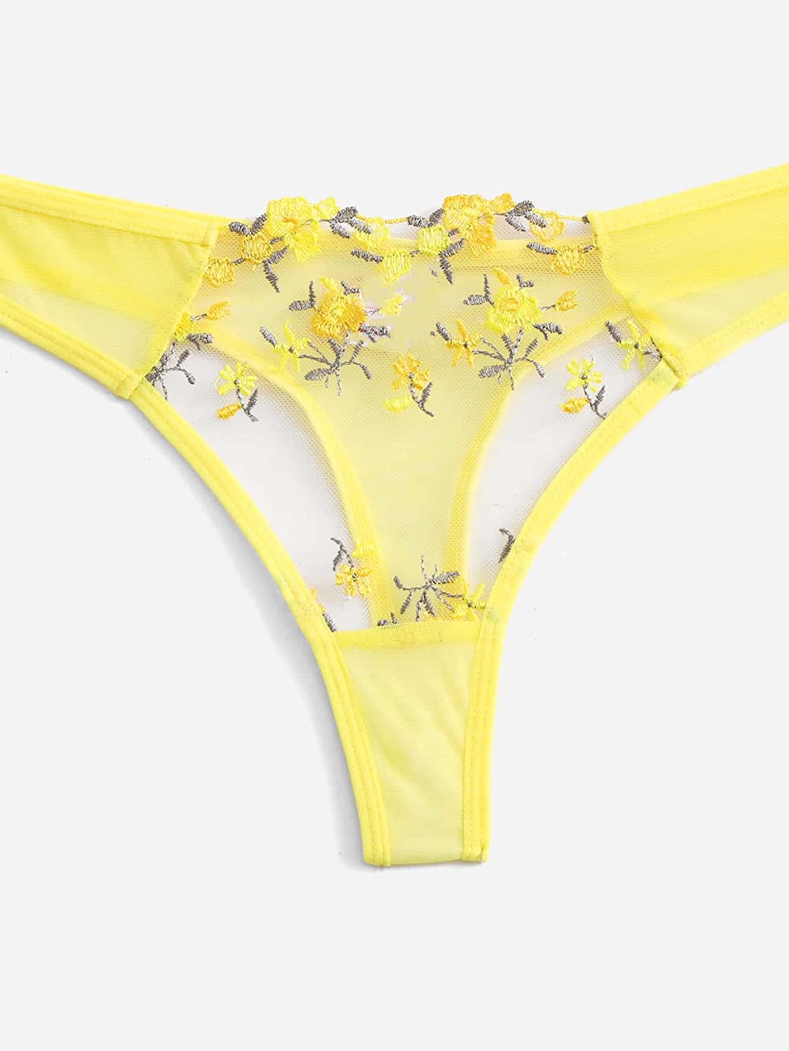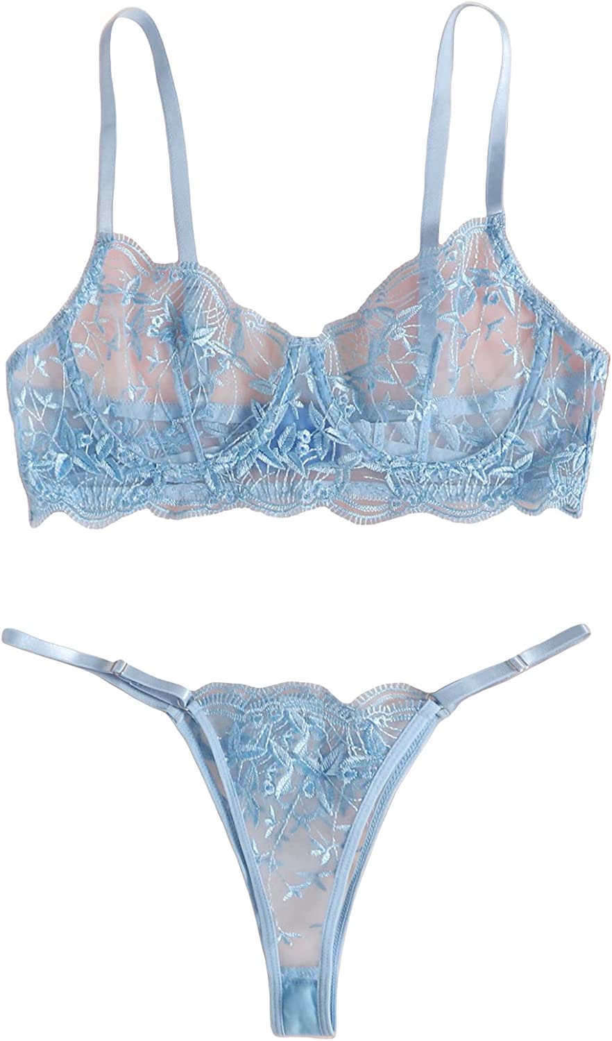 WDIRARA Women's Floral Embroidery Underwire Lingerie Set Mesh Bra and Panty Set