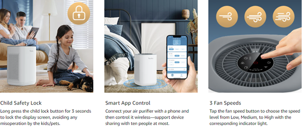 Perfect for improving indoor air quality no matter for babies, children, the elderly, or other people who live with furry pets.