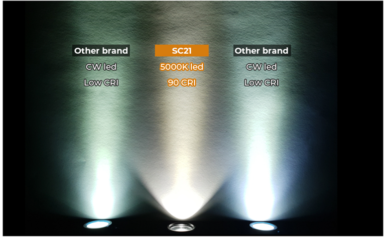 Advanced Temperature Regulation (ATR) technology: As the temperature rises, SC21 is programmed to automatically step down and step up the brightness to prevent over-heating.