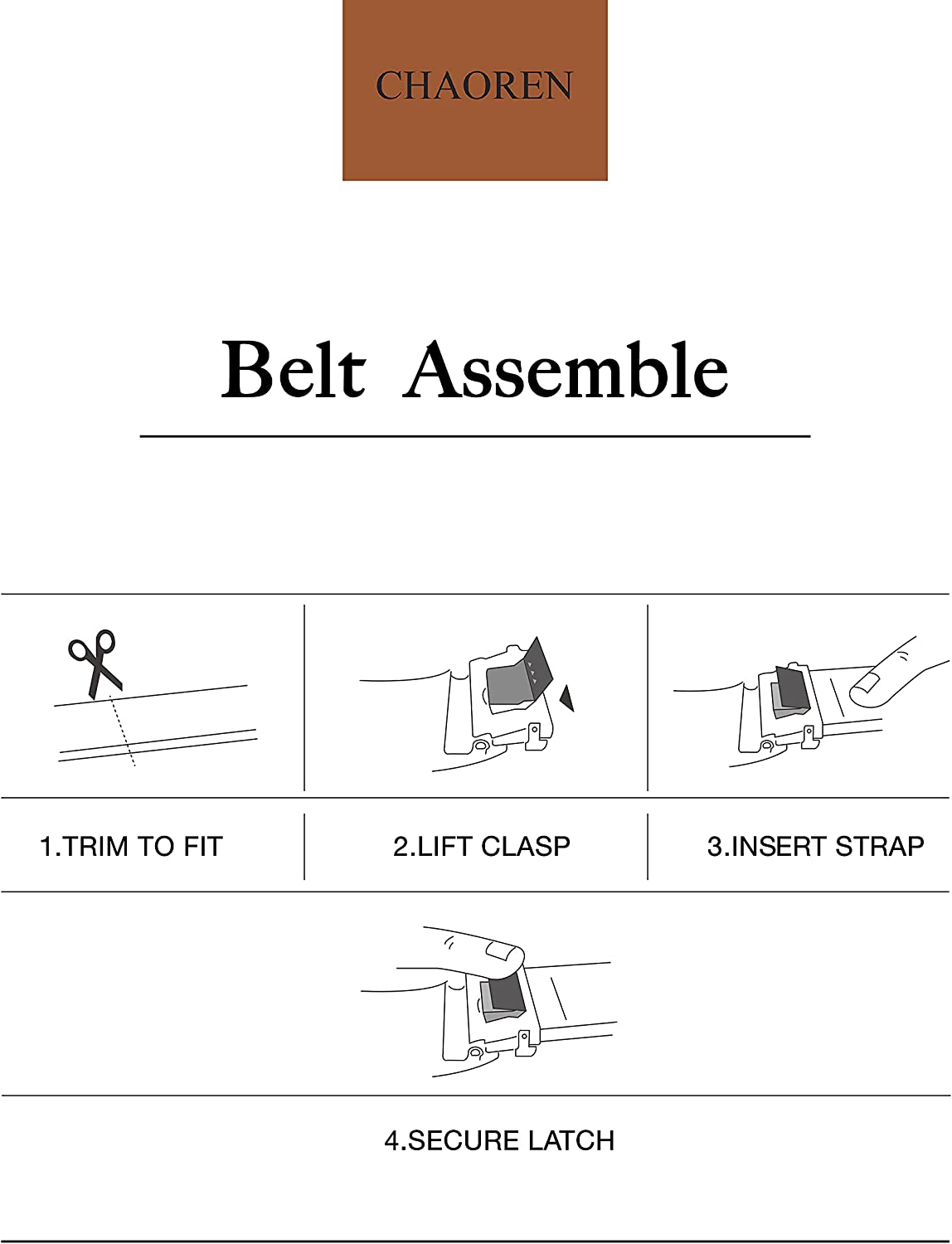 1. Cut the belt according to the above operation image.2. After finishing the adjustments for length, firmly press the closure buckle clamp and pull the strap to check if it is latched and hold.