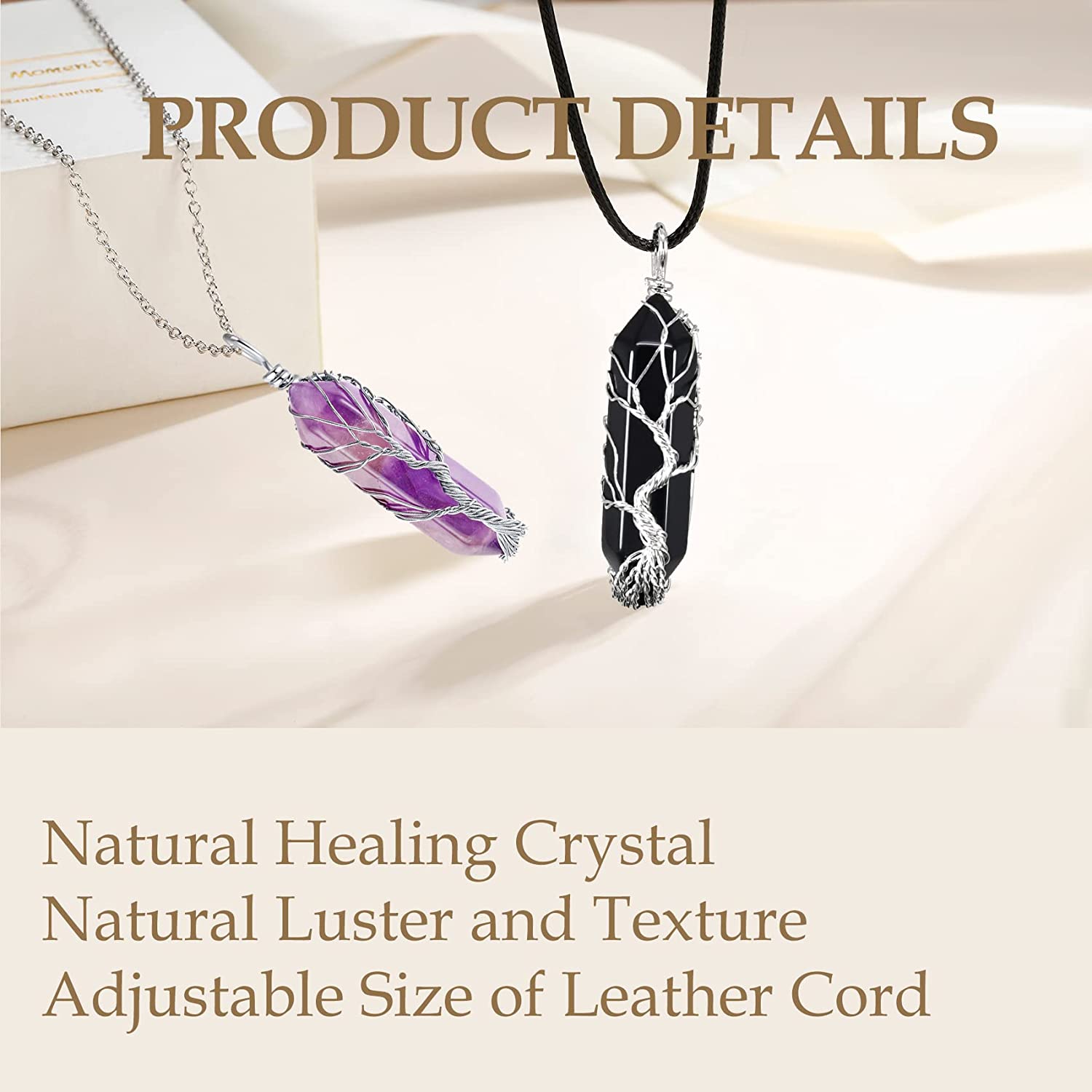 • "?DETAILED SIZES?:The Amethyst Rhombus Crystal Necklaces Length: 2.17inches/55mm;Width: 0.51inches/13mm;Weight: 10g. The Obsidian Rhombus Crystal Necklaces Length: 2.17inches/55mm;Width: 0.51inches/13mm;Weight: 10g.Stainless Steel Chain Length: 23.6-25.6inches/600-650mm;Lether Chain: 17.7-19.7inches/450-500mm,You can choose your favorite and suitable chain to match the Necklaces"