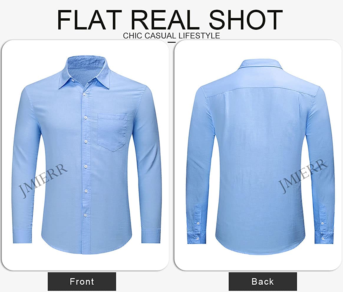 • Material: JMIERR fashion mens button down long sleeve dress shirts is made with high-quality cotton linen fabric, breathable, lightweight, soft, friendly to skin.You can wear it as a casual shirts or as a dress shirts. We have taken a real video for each color of this men's Linen Shirt for your reference.