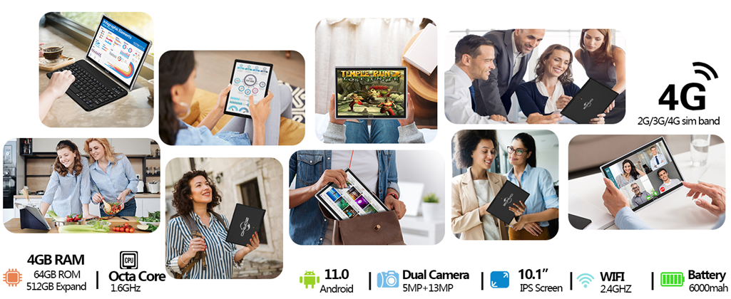 • [4G LTE calls and Dual Wifi]: 2 in 1, perfect combination of mobile phone and tablet. With the 4G phablet feature, Our tablet has Dual SIM capabilities that allow you to have two phone numbers in one device. You have both 2.4G Wi-Fi and 4G/3G/2G options for internet connectivity. Whenever Wi-Fi connection isn't available, you can rely on your data plan to connect to the internet. Notice: SIM CARD is NOT included.