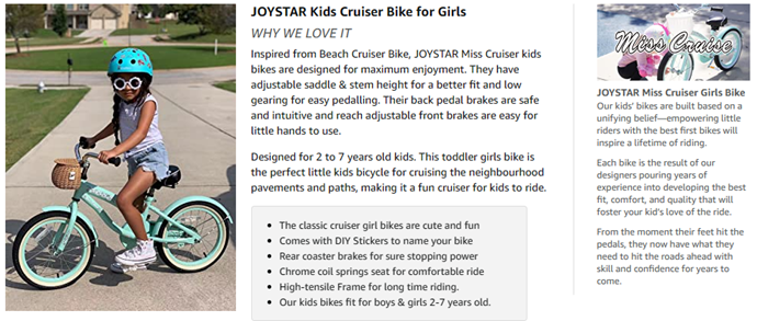 - ELEGANT SIMPLE DESIGN-JOYSTAR Kids Cruiser Bike is the perfect little kids bicycle for cruising the neighbourhood pavements and paths. With a light steel frame and rims the children can cruise up to speed with ease but rest assured that when it's time to pull up fast the combined backpedal rear brake. The kids bike is smooth and easy to pedal making it a fun cruiser for kids to ride.