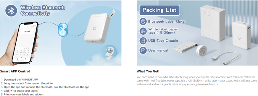 - Smarter and Smaller-Compared with the traditional label makers, this portable label maker is smaller and smarter. Compact and lovely design and you can take it into your pocket, and print high quality labels and stickers anytime, anywhere.