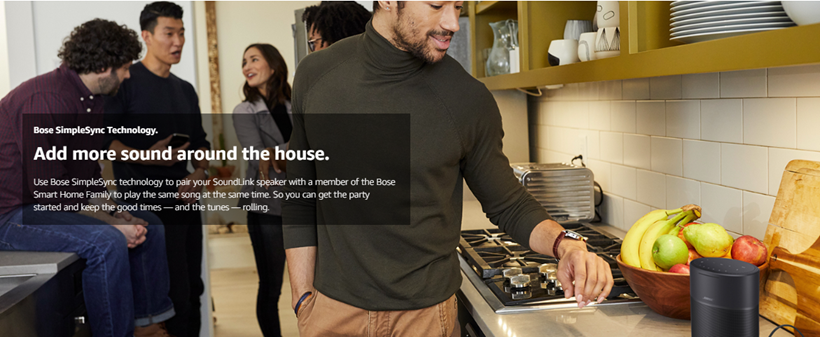 • BOSE SIMPLESYNC TECHNOLOGY: SimpleSync pairs your Bose SoundLink Revolve II Bluetooth Speaker to compatible Bose products for sound that follows you from room to room. Away from your phone? Press and hold the Bluetooth button on each device to sync their sound. Already got a group going? Link by pressing the Action button to connect at a moment’s notice.