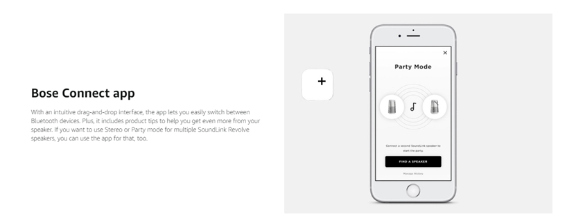 • BOSE CONNECT APP: Easily manage Bluetooth connections, unlock features and access future software updates through the Bose Connect app