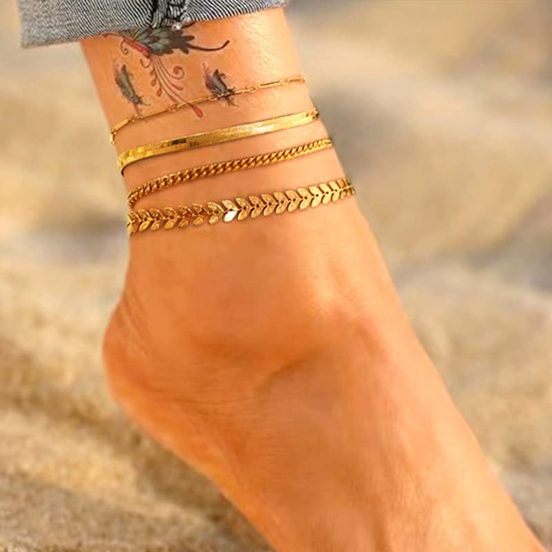 • ❤Multiple Styles Design -4pcs different style anklets, Quartz anklet, Herringbone Snake anklet, Bar chain and Cuban anklet are simple and beautiful design,for unique you,make you look more attractive.Summer Ankle Bracelets for Women to Accessorize Your Summer Outfits.