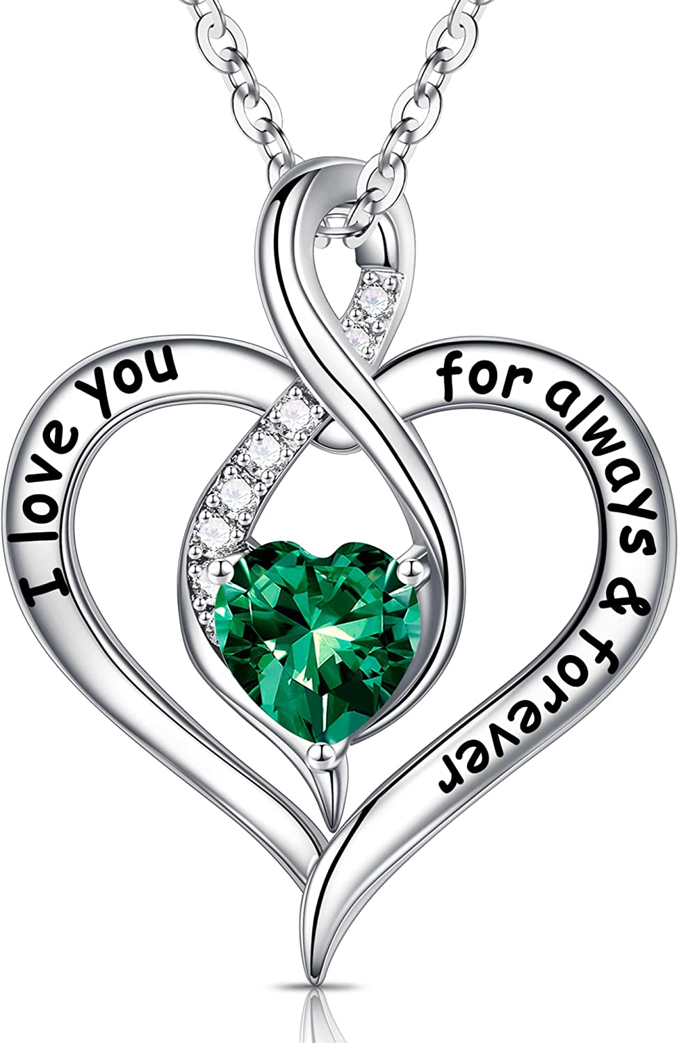 Love Heart Birthstone Necklace for Women, S925 Sterling Silver Birthstone Necklace I Love You Always and Forever Valentines Day Gifts Mothers Days Gifts Jewelry Gifts for Mom Girlfriend Wife Girls