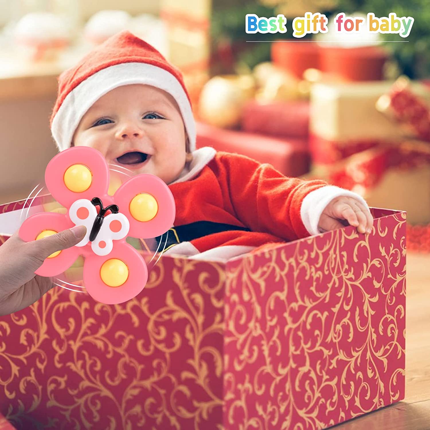Suction Cup Spinner Toy for Baby, 3PCS Spinner Sensory Toys for Toddlers 1-3 Cartoon Baby Bath Toys 6 to 12 Months Kids Birthday Gift for Baby High Chair/Bathing/Dining Table/Travelling (Colorful)