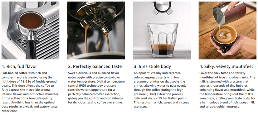 - Dose Control: The integrated conical burr grinder automatically grinds, doses and tamps 18-22 grams of coffee, similar to the commercial espresso machine in your favorite cafe.