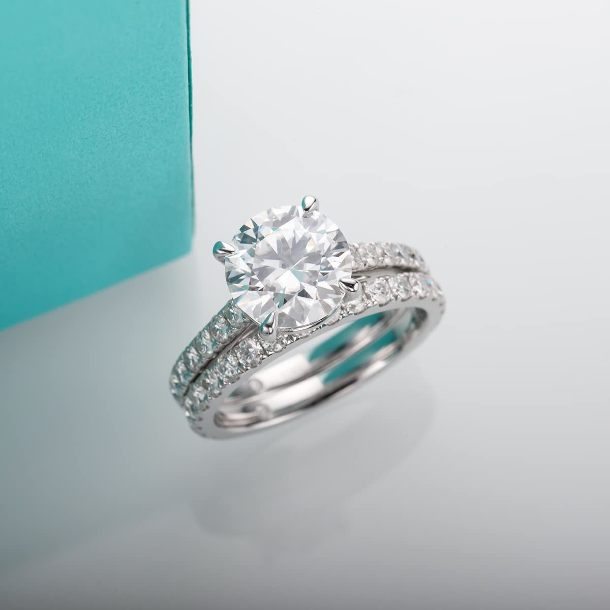 CLASSIC DESIGN: Classic minimalist eternity design, 4ct D color center moissanite engagement Ring and 1.22ct moissanite wedding band , excellent eight hearts and arrows, round brilliant cut is the best shape to reflect lights in and out. Timeless classical in beauty boost any casual or elegant formal attire, making you focus of the feast, banquet, meeting, dating, prom, party, travel, just feel confident to wear it, be ready for receive many compliments from your friends.