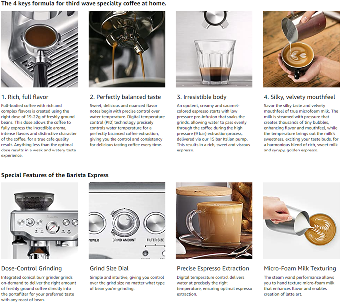 Breville Barista Express Espresso Machine, Brushed Stainless Steel, BES870XL