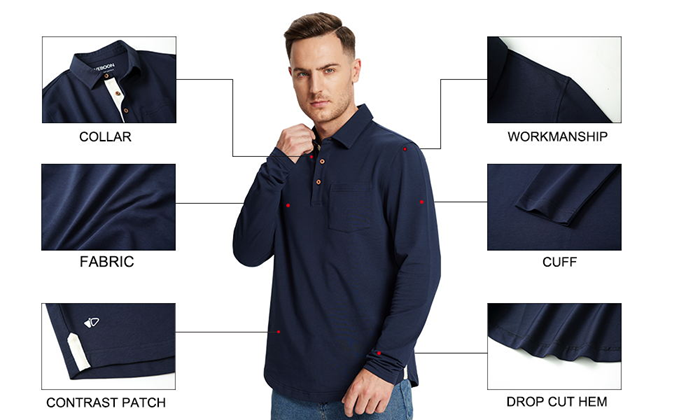 WARM TIPS: This long sleeve polo shirts for men, the model is 5'11"height, 172lbs wearing a size medium for reference. Please refer to the size chart in product image or description before you order it.