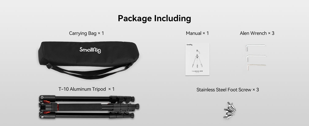 Height Adjustble and Innovation Design:The height of SmallRig T-10 tripod is adjustable, 4-section column legs with 3 quick release flip-locks allows you to adjust the working height from 19.7" to 67.7" in seconds. Different from other ordinary tripods, this tripod has three 1/4" threaded holes added to the bracket, which can meet the needs of external magic arms, mobile phones, monitors, etc.