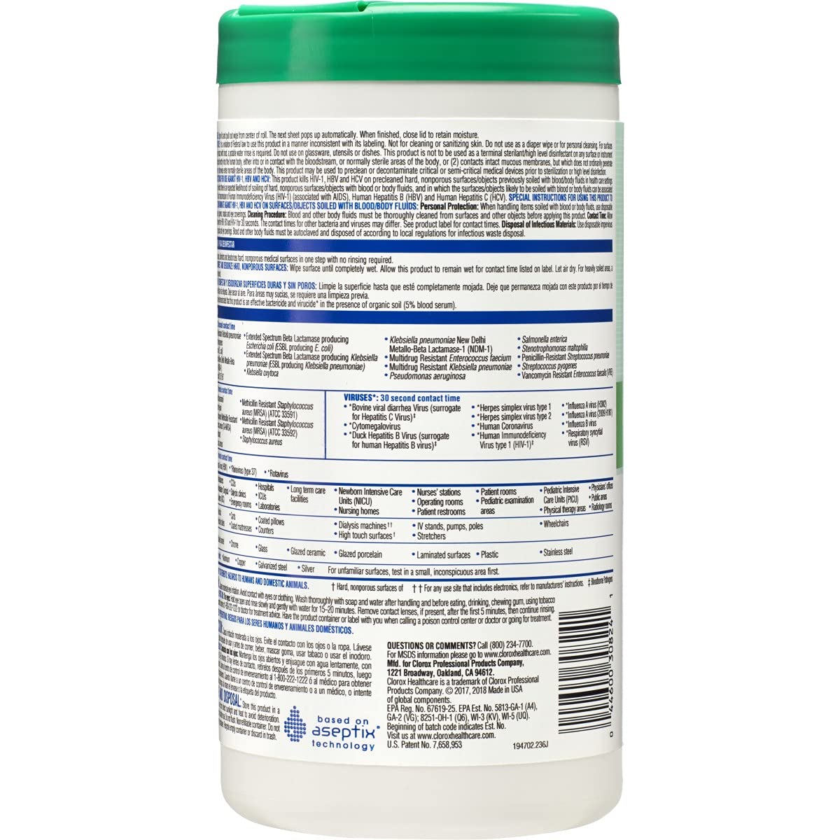 • DISINFECTANT: Clorox Healthcare Hydrogen Peroxide Disinfecting Wipes kill more than 40 bacteria and viruses in as little as 30 seconds