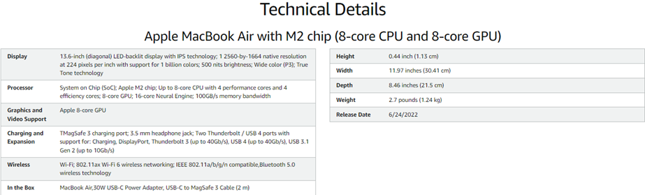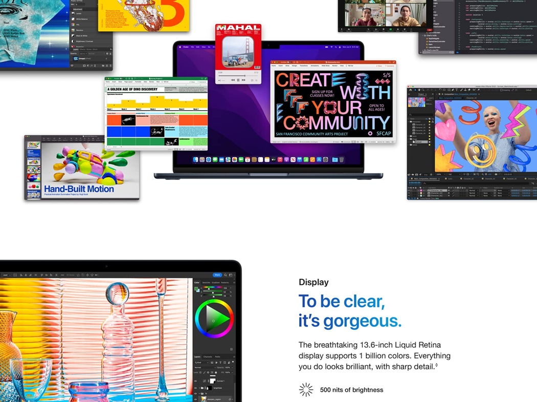 • BIG, BEAUTIFUL DISPLAY — The 13.6-inch Liquid Retina display features over 500 nits of brightness, P3 wide color and support for 1 billion colors for vibrant images and incredible detail.