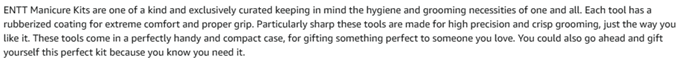 • ALL ROUNDER: One kit that includes tools for grooming your hands, feet and face. Now enjoy doing your own Manicures, Pedicures and facials at home carefully. The tools are of a professional grade stainless steel with a Matt finish. for a sturdy grip.