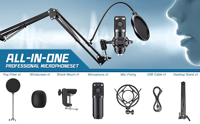 • Plug and play USB recording microphone,No need to install drivers and complex debugging.which is compatible with Windows, Mac and Linux . that connects directly to USB port for studio recording, podcasting, voice-over, streaming, YouTube video production, etc