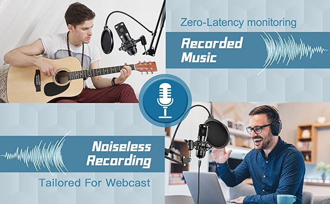 • Professional Microphone, Built-in cardioid capsule can capture sound in front of the microphone,zero-latency monitoring allowing it to capture the clear, smooth, crisp sound and better eliminate background noise. Reproduce your sound perfectly to prevent distortion.