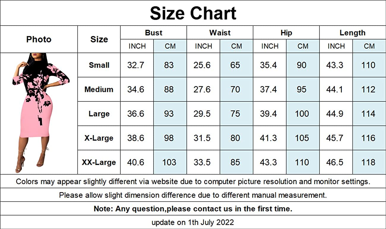 Women's 3/4 Sleeve Bodycon Dresses Work Casual Floral Print Pencil Midi Dresses with Belt