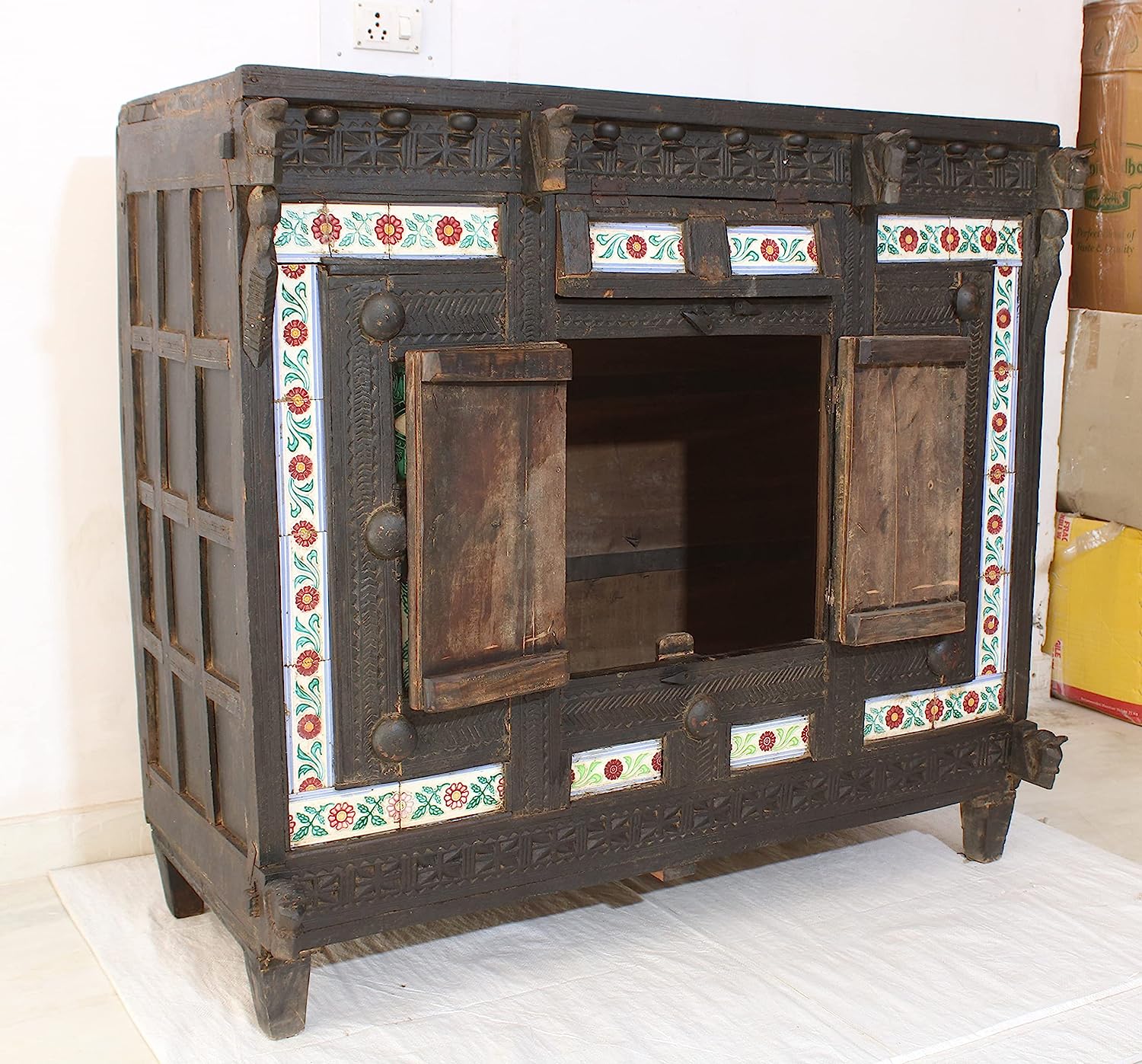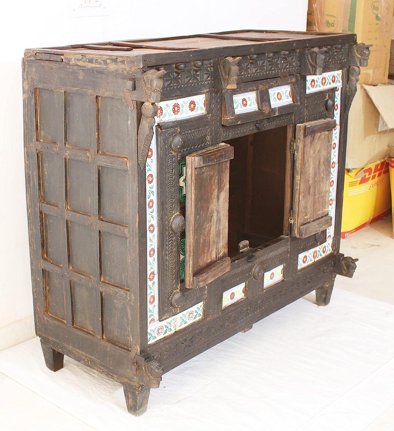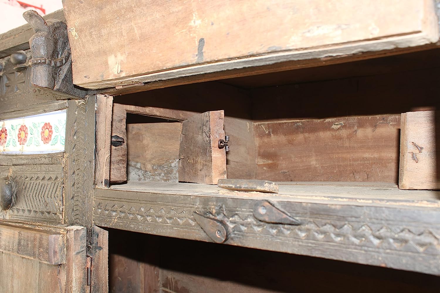THE D.N.A. GROUP Antique Indian Wooden Damchiya Storage Box for Home and Table Décor