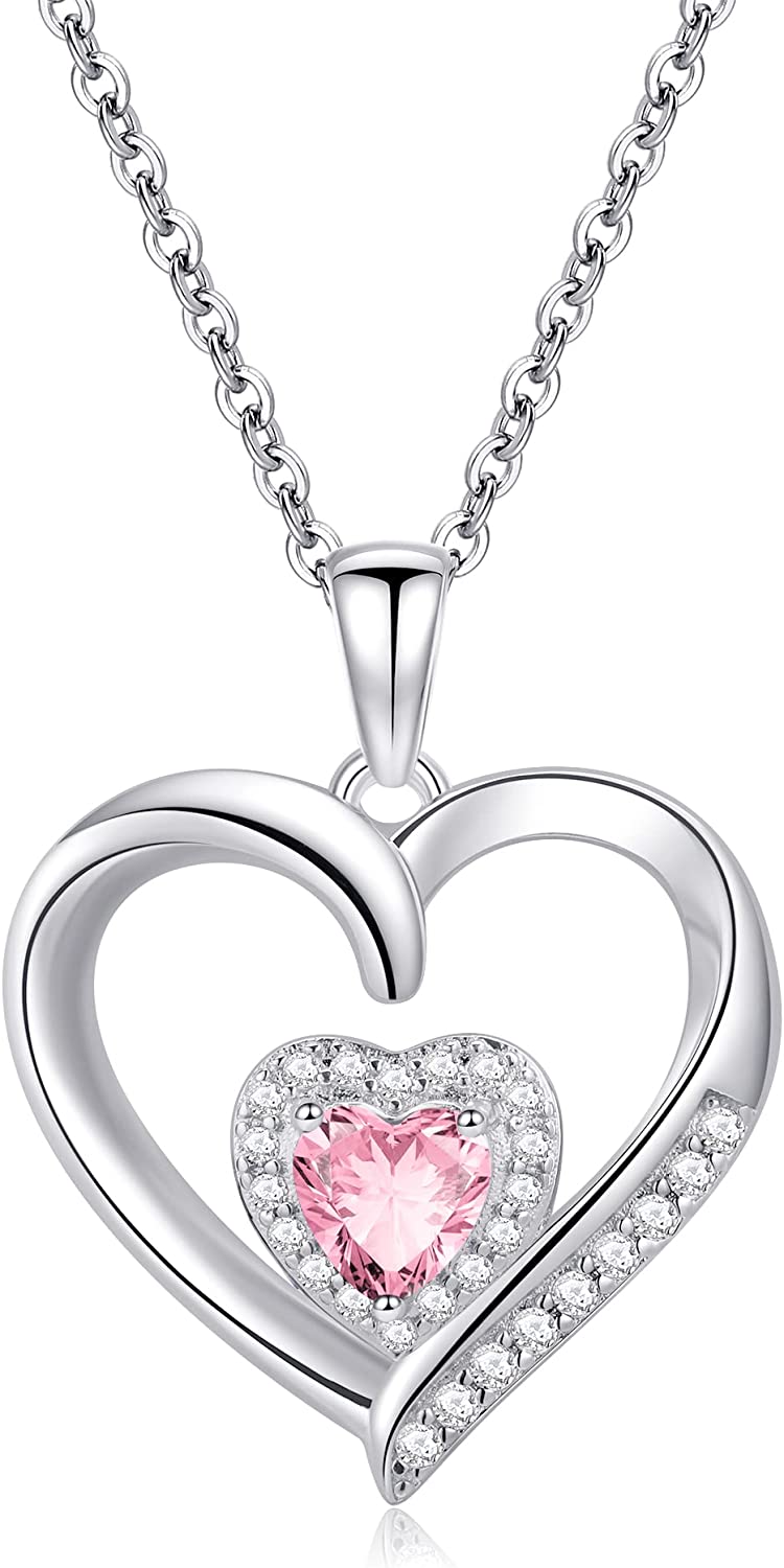 Heart Birthstone Necklace for Women, S925 Sterling Silver Necklace Birthstone Necklace Heart Necklace for Women Teen Girls Birthday Jewelry Gifts for Women Teen Girls