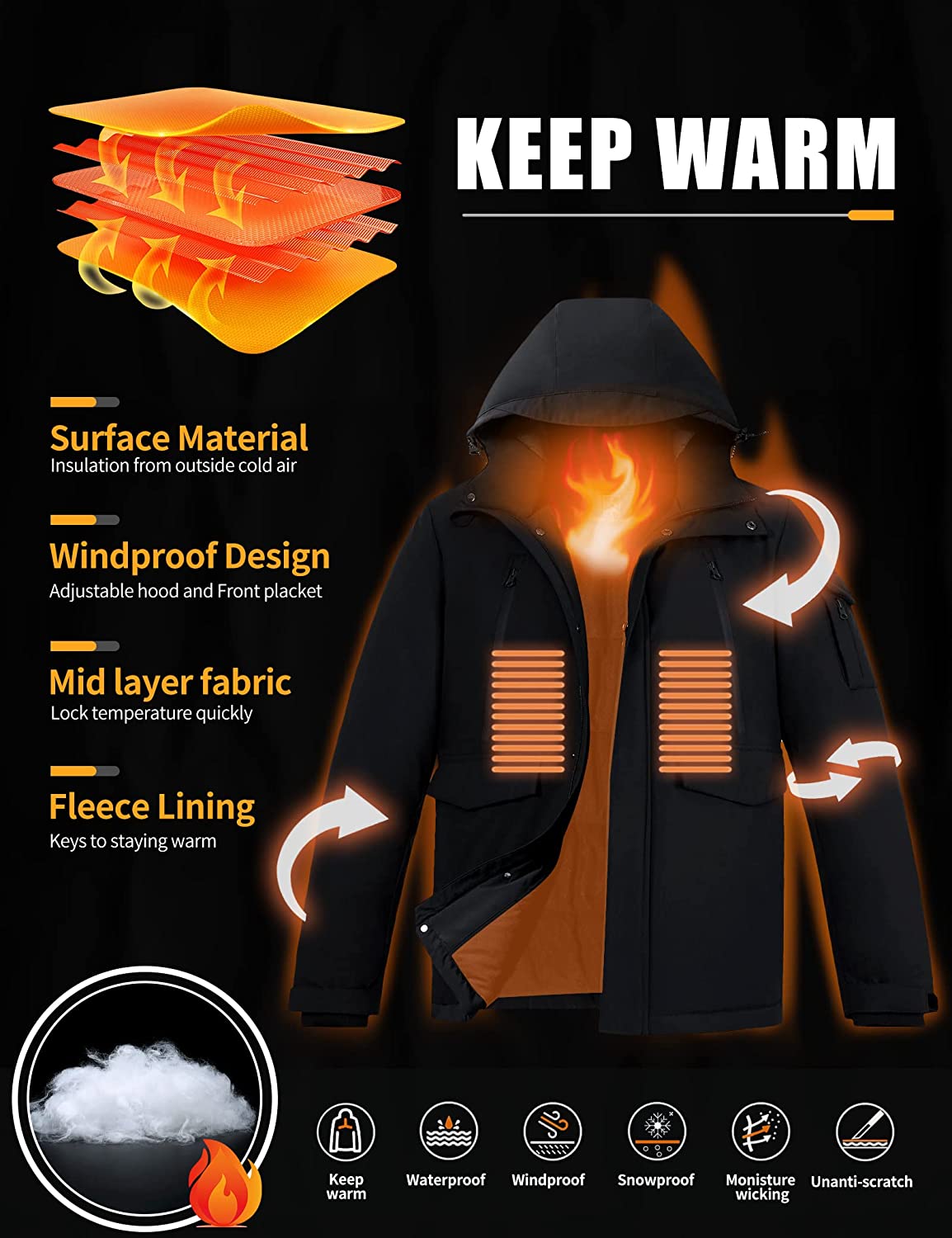 Warm & Durable winter jackets for men: 100% Polyester Fabric and Soft Fleece Lining jacket keeps you warm and comfortable in cold weather, The male winter coat shell fabric is durable and wear-resistant, Ideal for your autumn/ winter outwear.