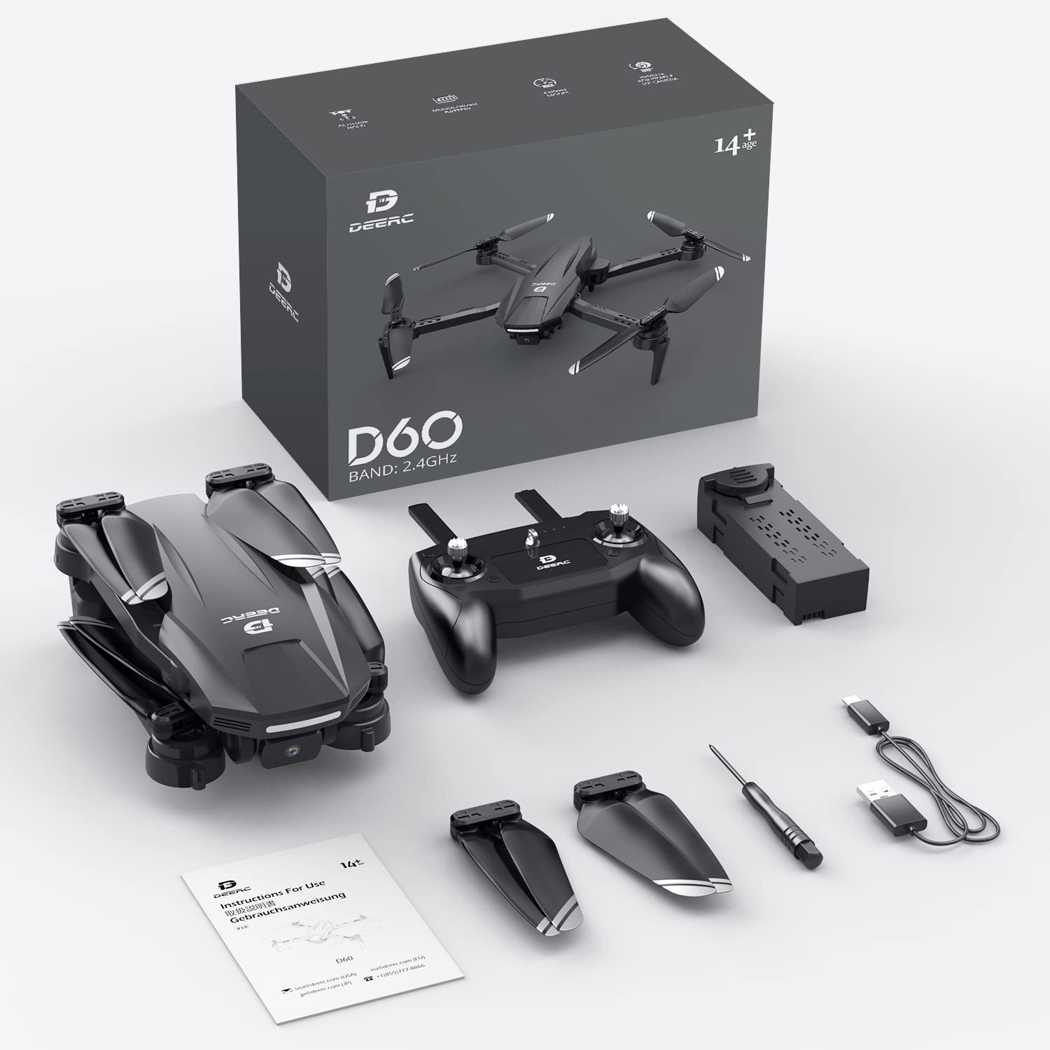 DEERC Drones with Camera for Adults Kids 1080P HD Video, D60 FPV Drone for Beginner with Long Battery Life, Gravity Sensor, Foldable Hobby RC Quadcopters & Multirotors, Toys Gifts for Boys Girls
