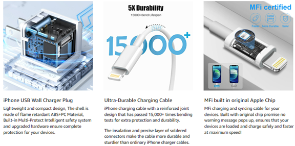 Special Feature | Tangle Free, Heat Resistant, 6FT charging cable |