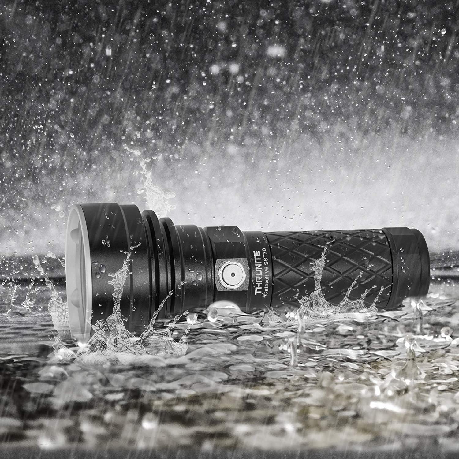 ThruNite Catapult V6 SST70 LED Rechargeable Flashlight, 756 Yard Throw, 2836 High Lumens Bright Searchlight, Long Beam Distance Flashlight for Hiking, Camping, and Hunting, Black, Cool White - CW