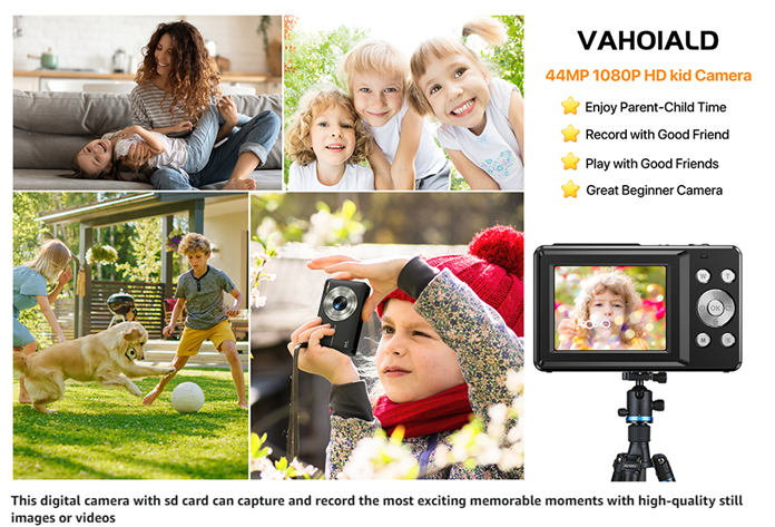 - 【FHD 1080P & 44MP DIGITAL CAMERA】: This compact digital camera for indoor/outdoor can be used for making video features with Full HD 1080P video resolution, this portable digital camera can capture 44.0MP image resolution & support 16X digital zoom, helping you capture and record the most exciting memorable moments with high-quality images or videos. This rechargeable digital camera is perfect for recording happy moments with friends, family members, and classmates indoors/outdoors.