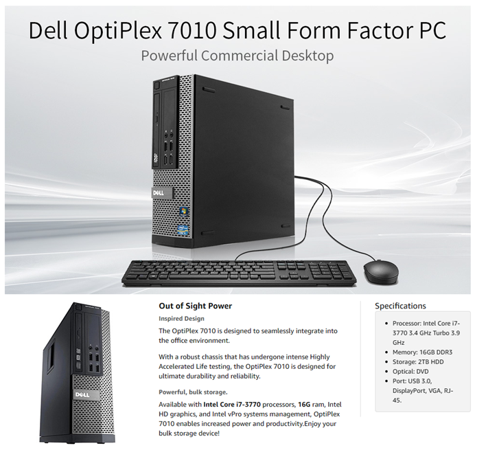 DELL Optiplex 7010 Small Form Factor Desktop Computer, Intel Quad-Core i7-3770 Up to 3.9GHz, 16GB RAM, 2TB 7200 RPM HDD, DVD, USB 3.0, WIFI, Windows 10 Pro (Renewed)']