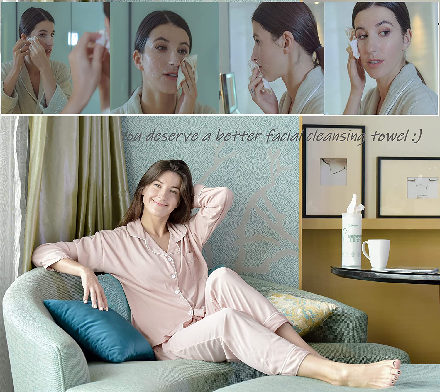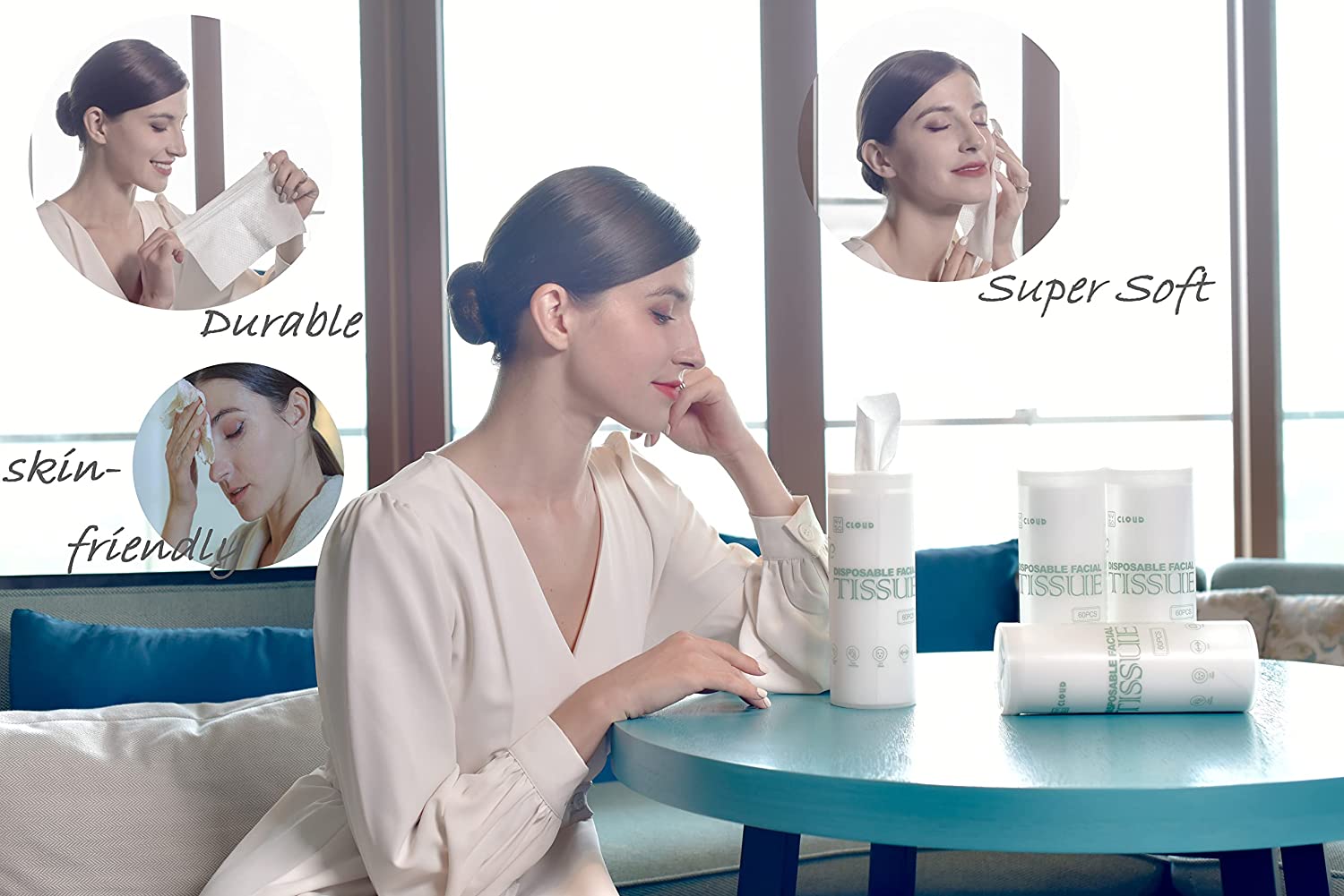 NYS CLOUD – Disposable Ultra Soft Facial Tissue, Daily Face Wipe and Cleansing Towelettes, 60 Count Portable Travel Size, Unscented