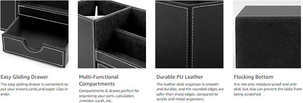 - Convenient: The pencil holder is divided into 4 parts, and the display area includes 1 drawer and 2 racks. So, you can organize your items neatly, and find them quickly.