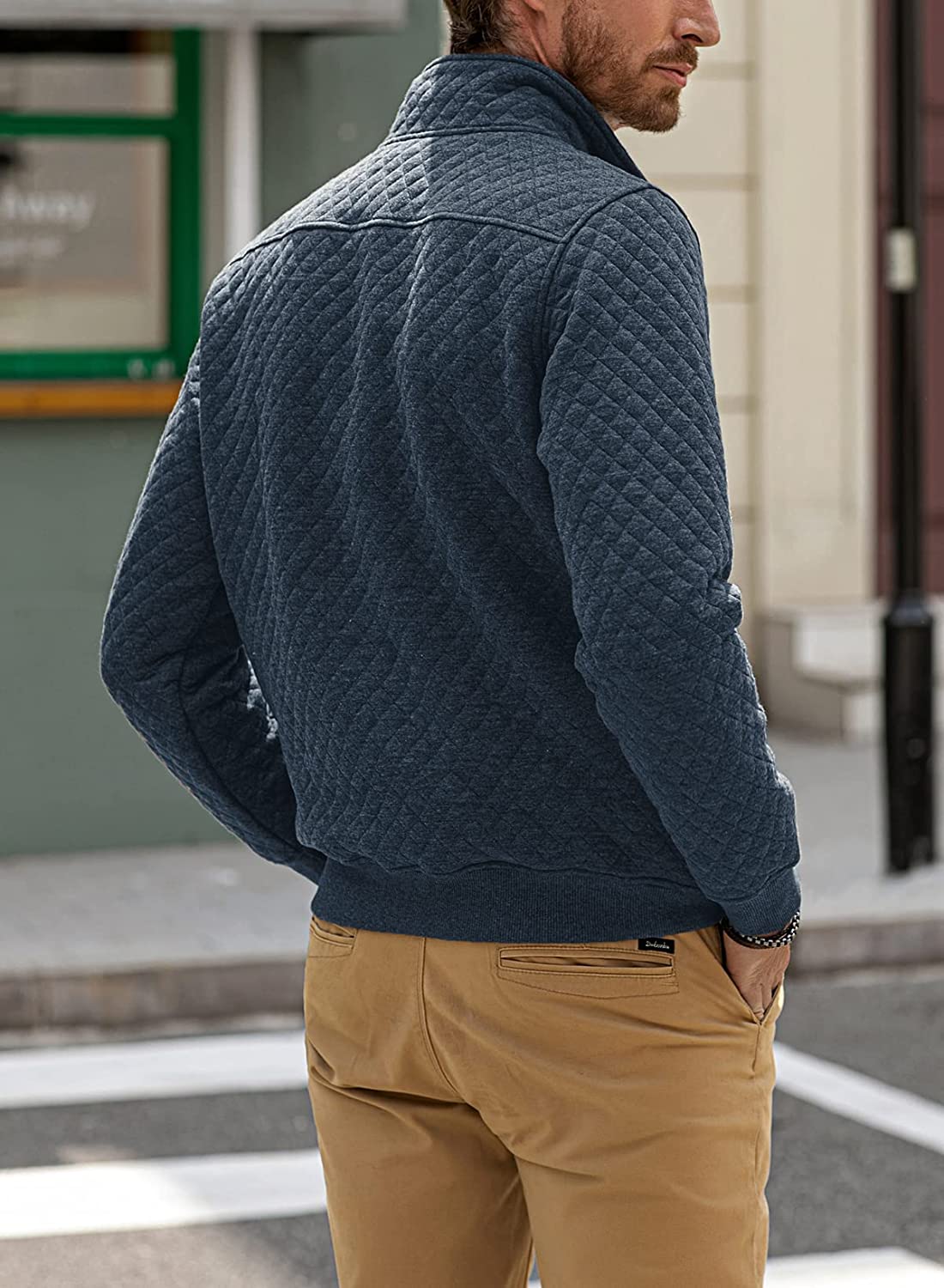 Button closure, long sleeve , Solid color trendy weave sweatshirt, Lightweight mock neck sweatshirt.