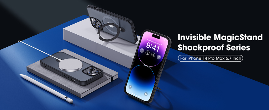 - 【All-New MagicStand Series - Beyond Being】After years of deliberate planning and designing, CASEKOO is the FIRST TO ENGINEER the brand-new Invisible MagicStand Series for iPhone 14 Pro Max Phone Case. We combined the strong magnetic technology with a foldable kickstand by applying our compact and practical design philosophy. MagicStand case for iPhone 14 Pro Max easily attaches to all MagSafe accessories. The versatile kickstand on the back of the phone case folds back into a groove when unused.
